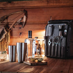 - Includes 16 essential bar tools, removable bar tool organizer, pocket for business cards and phone.