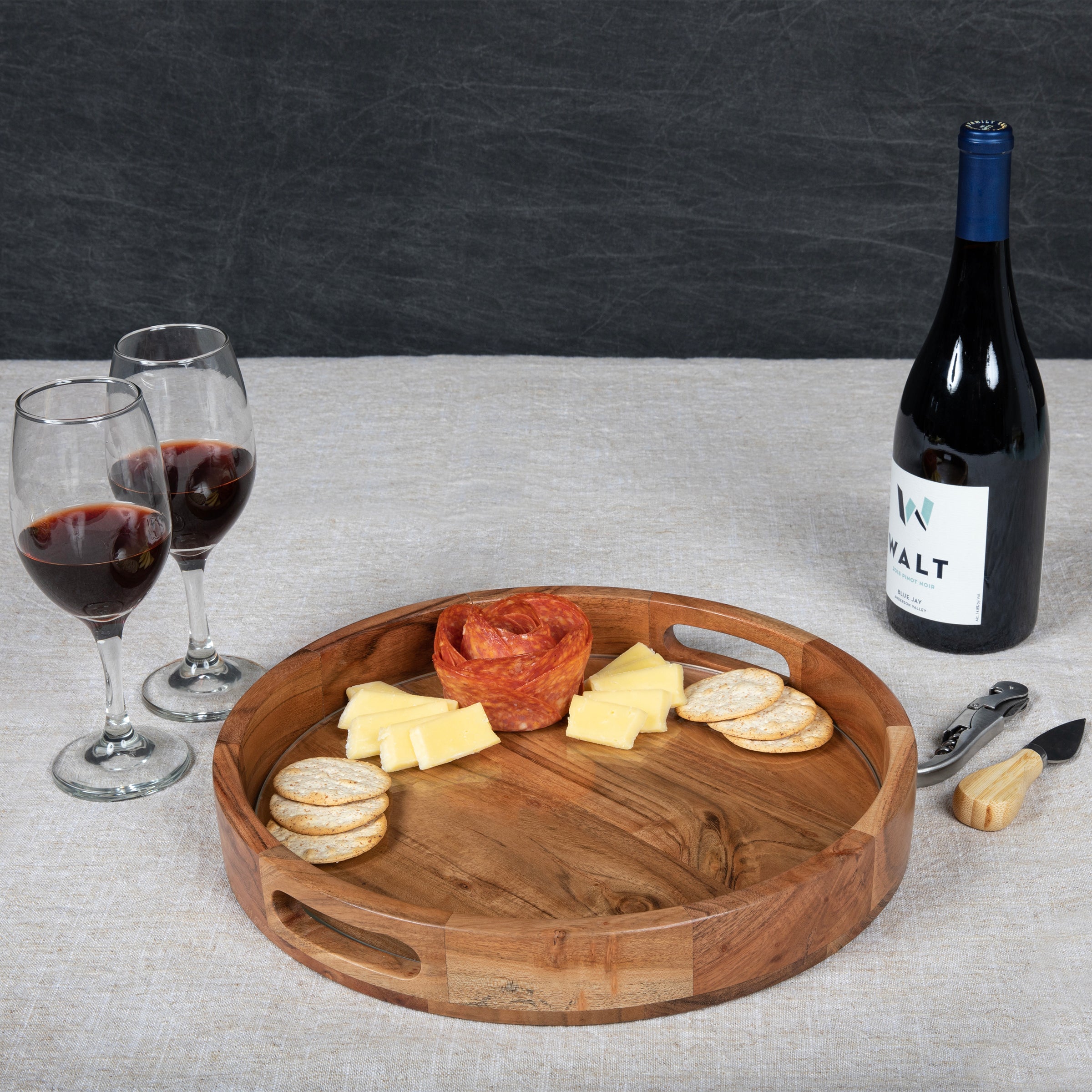 Canapés? Cappuccinos? Campari spritz? Whatever you’re serving, you can hold the cutout handles securely in high style with the Barista Serving Tray with Glass Insert. Equally useful for your cheese and charcuterie spread as it can be as an all-around serving platter, this wood serving tray is an entertaining MVP. The glass insert makes clean-up easier than ever, without sacrificing all the charm of the acacia wood look. This round wood tray makes a lovely housewarming, holiday, or birthday gift for hosts who know a thing or two - or three or four - about throwing a fabulous wine and cheese soiree!