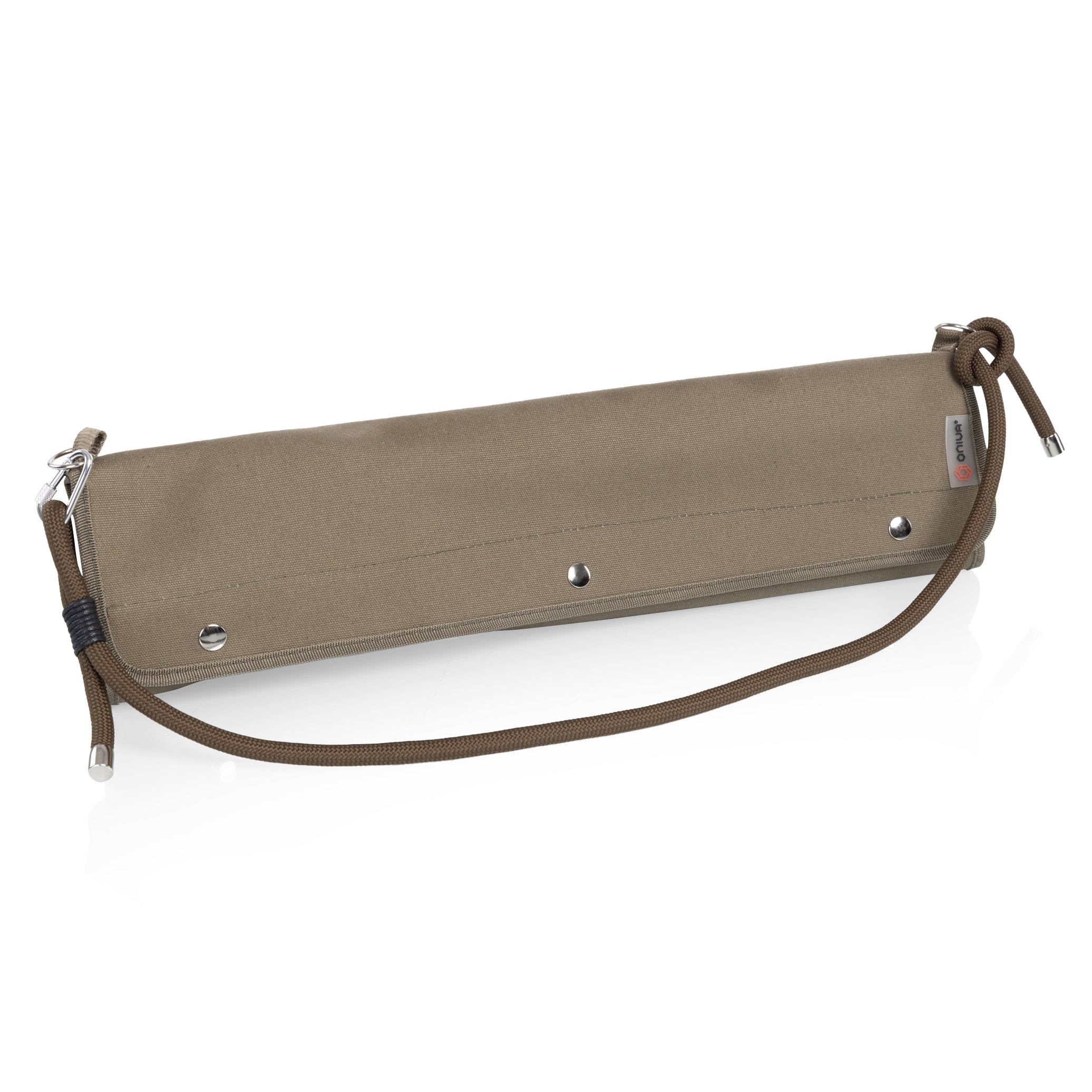 - Durable canvas tote with adjustable strap, and closures to hold it together when rolled up