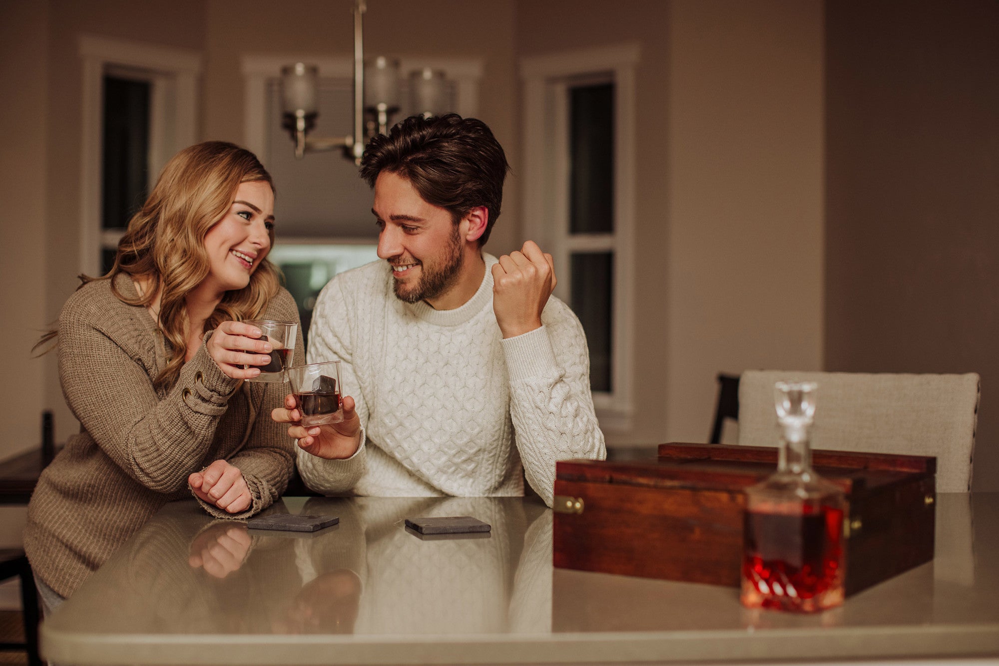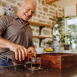 Summon the spirit of Beetlejuice with this hauntingly stylish whiskey box set. Crafted from durable parawood, this box features a captivating "Beetlejuice" design that will add a touch of gothic charm to any home bar.