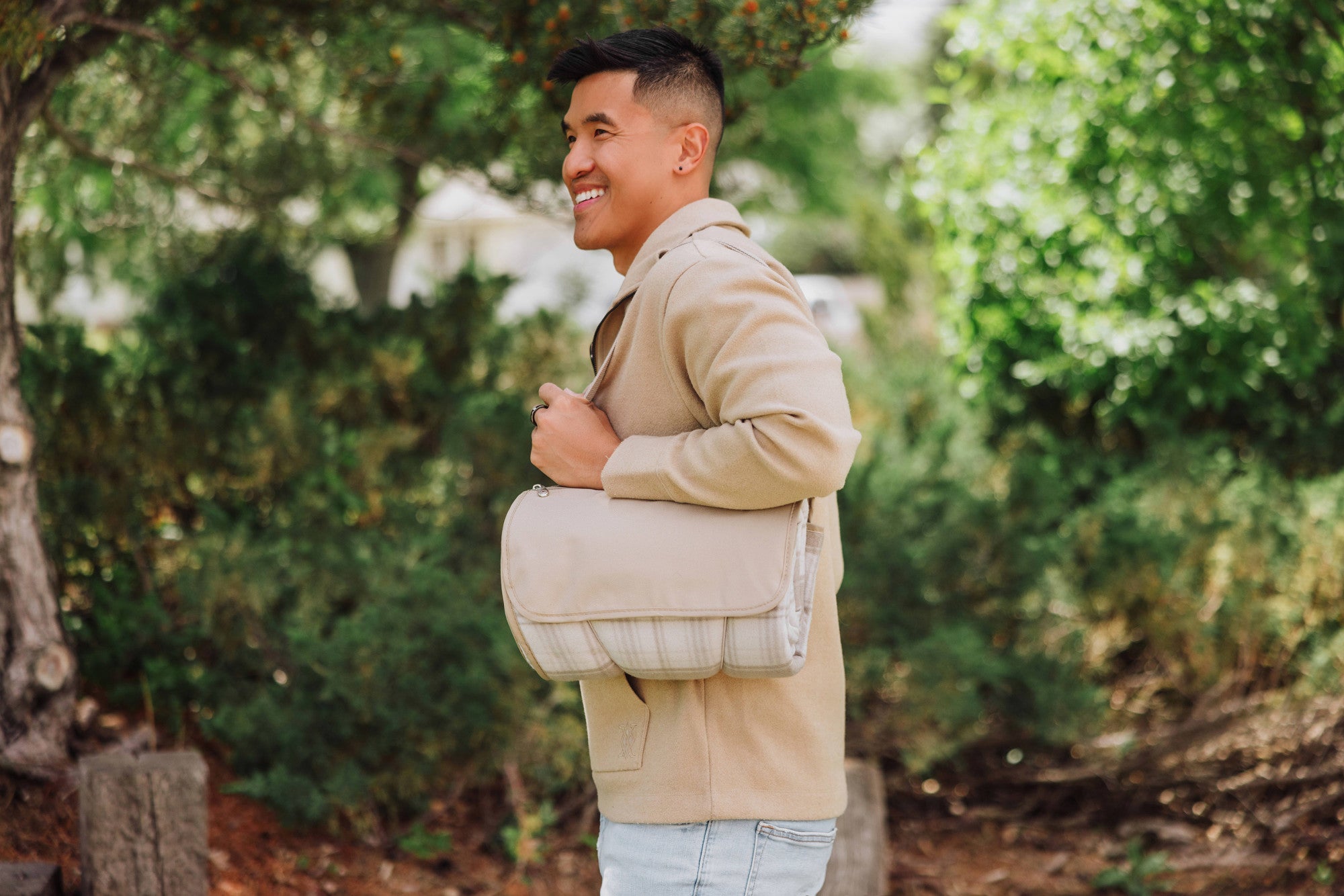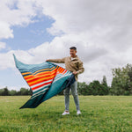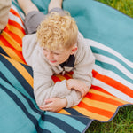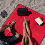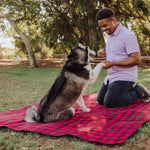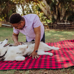 The Blanket Tote Outdoor Picnic Blanket is a cozy portable camping blanket with soft fleece topside and water-resistant underside that packs into a compact carry tote.