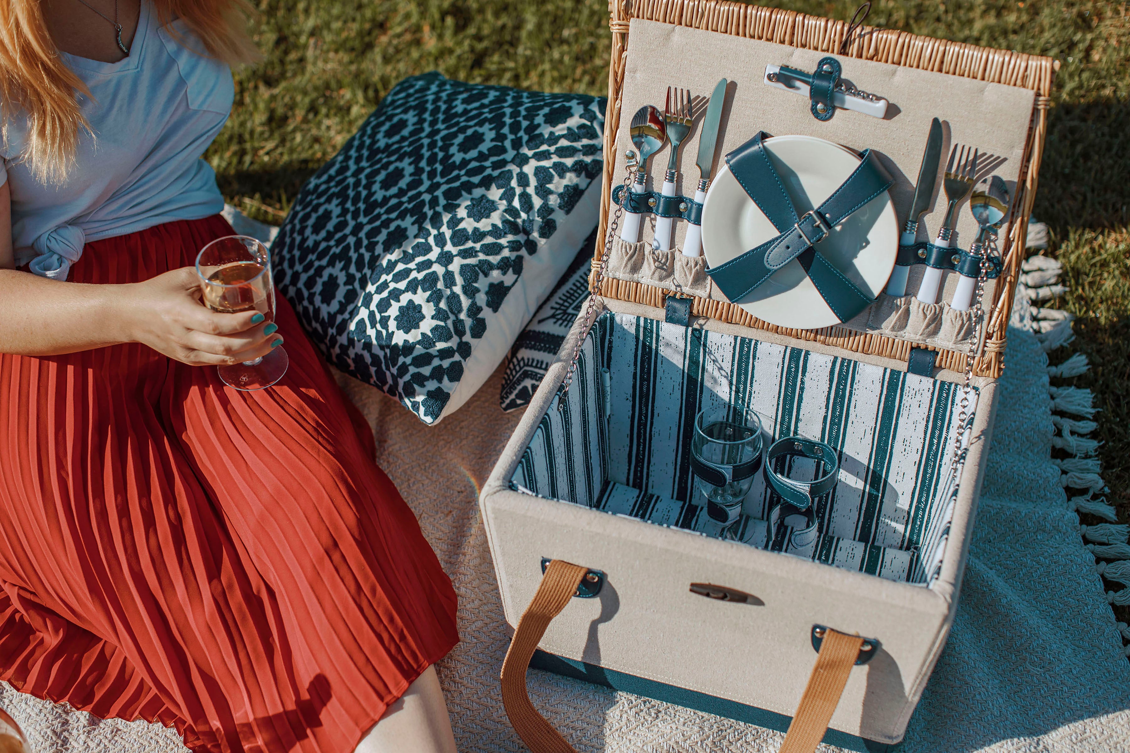 With the Boardwalk Picnic Basket for 2, you're all set for a romantic couple’s wine and cheese picnic.