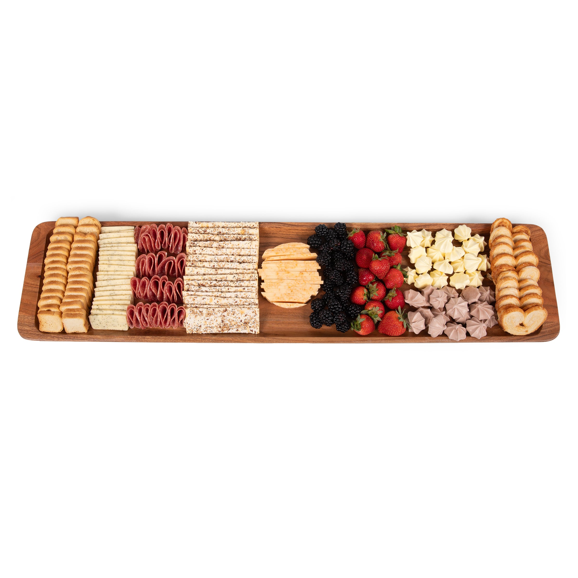 The Canapé 36" Appetizer Serving Tray is a gorgeous way to show off cheese and charcuterie - but with an amazing 52 lb capacity, it’s also ideal for serving large cuts of meat. The carved handles on this long wood serving tray make service a total breeze, no matter if you’re delivering an appetizer buffet or an XL main course. At approximately 36 inches long, this fabulous platter gives you space to get creative with an expansive charcuterie or dessert board for your next cocktail party, holiday celebration, or family get together. Yes, you read that right: this is a three foot long Acacia wood serving board, here to make all your XL party-throwing dreams come true!