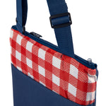 The Central Perk Vista Outdoor Blanket sneaks in as a super cute Gingham and navy Friends shoulder tote, but easily unzips and unfolds into an XL outdoor blanket for soaking up the rays on the beach or enjoying a picnic. It even fits right in on flights as a travel blanket.