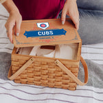 The Chicago Cubs Poppy Personal Picnic Basket is a handwoven wicker basket ideal for bringing a little country charm to your office lunch or for toting wine and snacks to an outdoor concert.