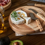 The Circo Cheese Board and Knife Set makes brilliant and attractive use of limited space with a split-level wood cutting/charcuterie board and interior cheese set.