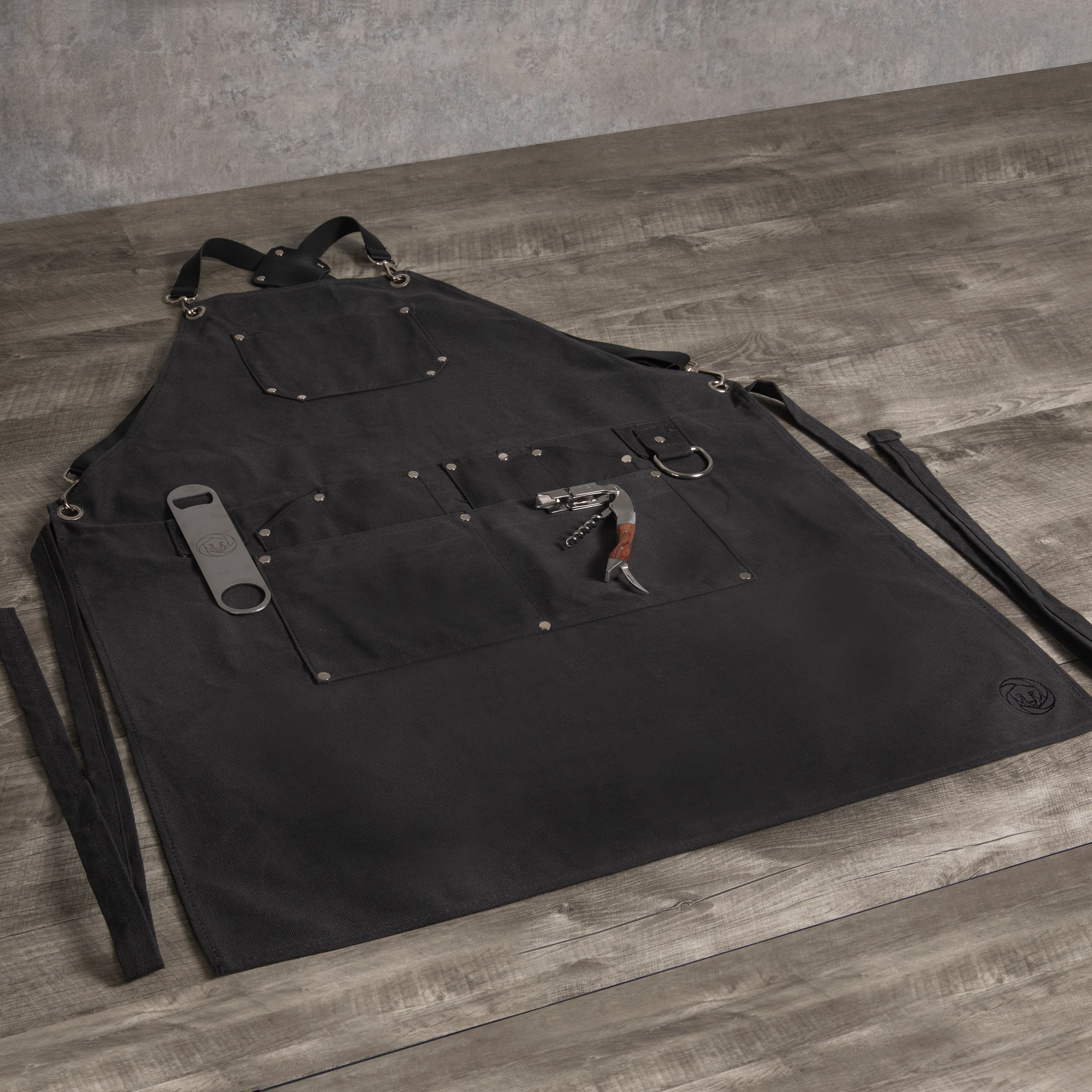 I got the Collins - Distressed Waxed Canvas Mixologist Apron as a gift. The apron is great weight and looks pretty cool. The leather straps are a little cheap looking but I like the styles of the cross back. The wine key and bottle opener are great additions to make this the perfect gift for any at home mixologist.