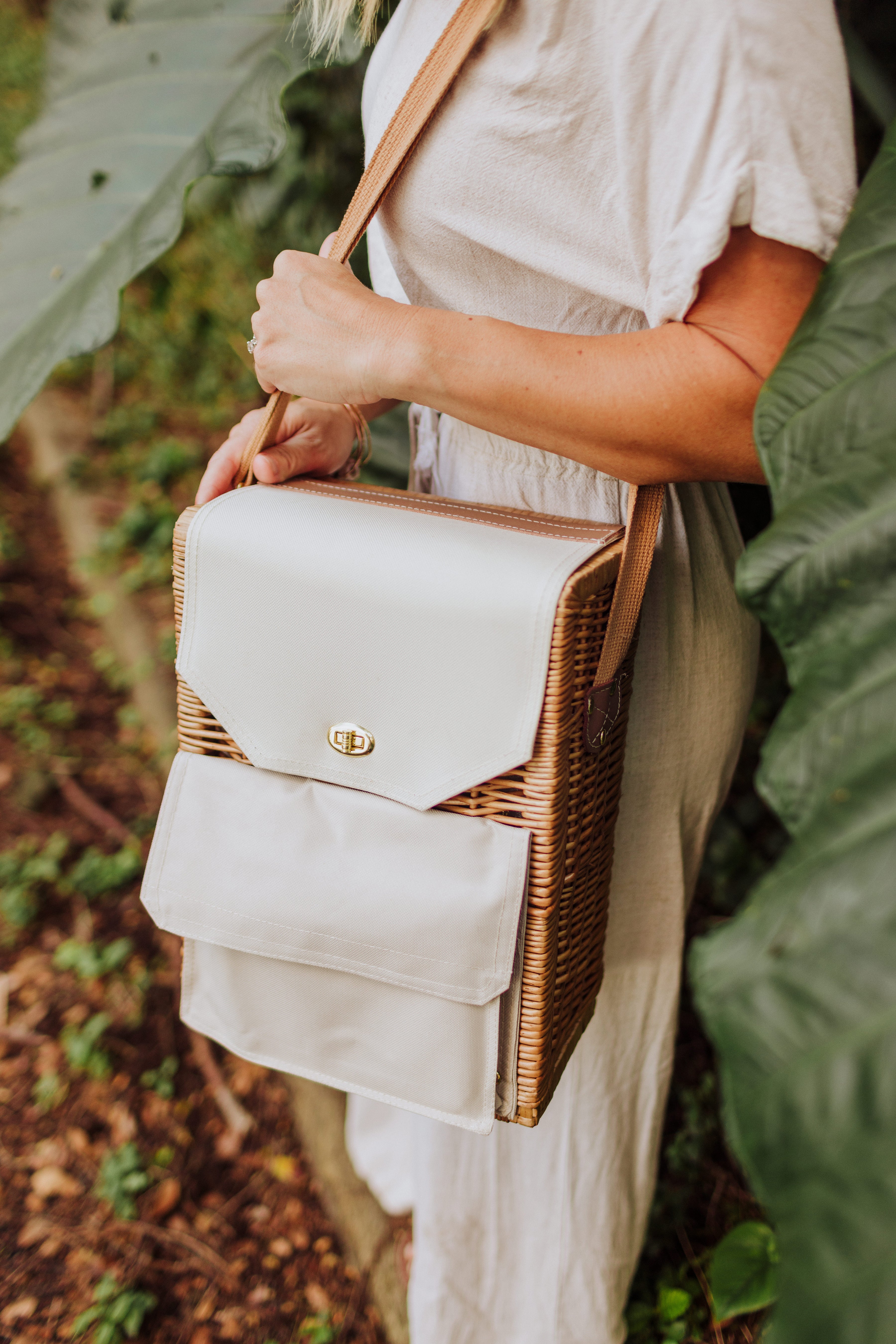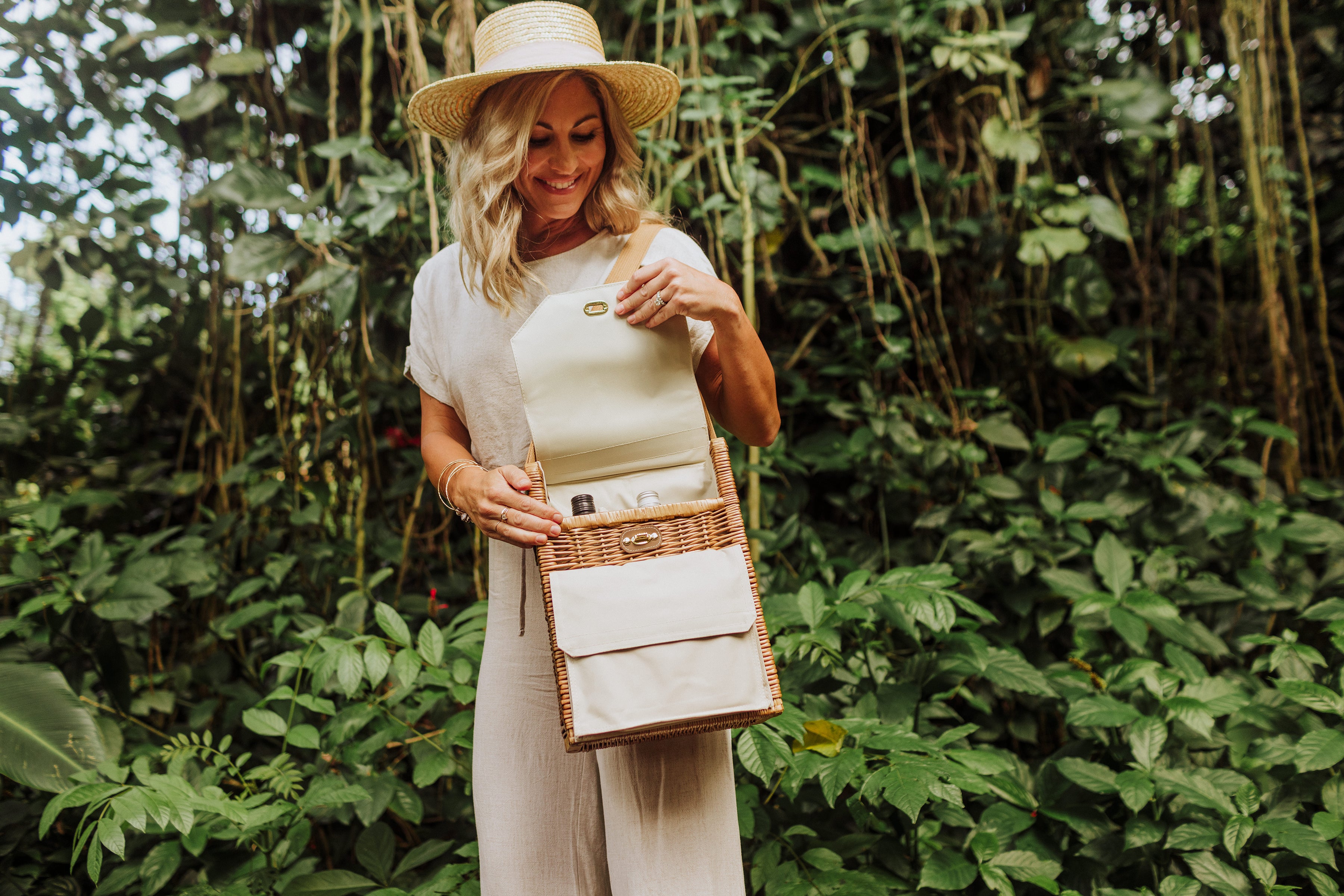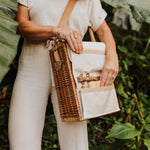 The Corsica Wine and Cheese Picnic Basket is the romantic wicker wine tote bag that dreams are made of.