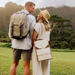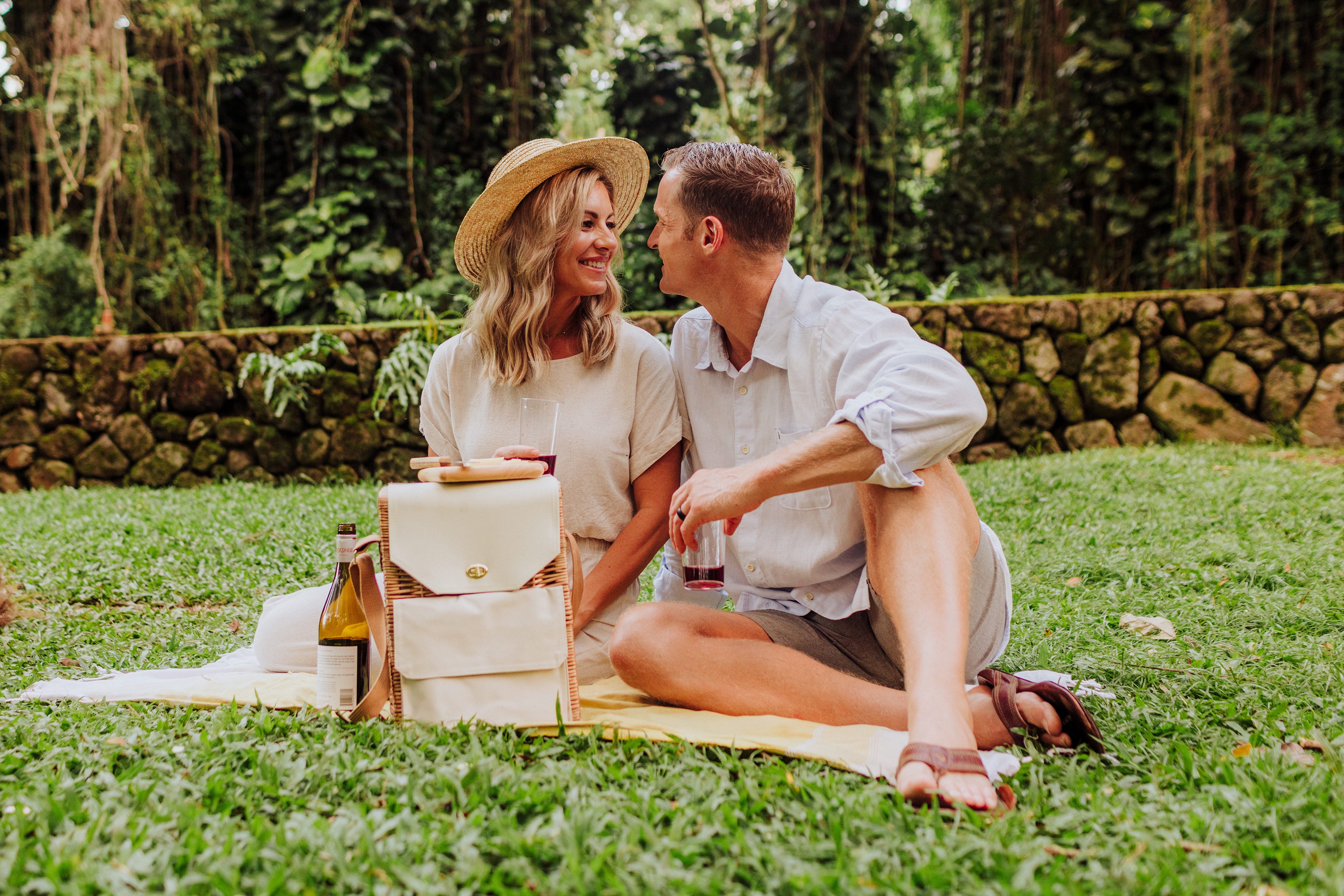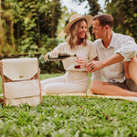 This picnic tote is cute, lightweight, and perfect for a couple people to take for an outing. It has space inside for wine, comes with a bottle opener, a cheese board, and a cheese knife. Perfect for 2- wine, charcuterie, and to hold some wine glasses. It is not too heavy, and the canvas material wipes clean pretty easily. Highly recommended as a gift or for someone who enjoys outdoor festivals/concerts.