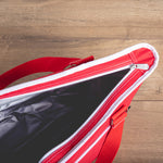 I like this tote bag. But its not as big as I thought it would be. The material its made with feels amazing and its very easy to carry. The tote bag itself can hold 2 frozen pizzas, frozen popcorn chicken and a box of hot pockets.