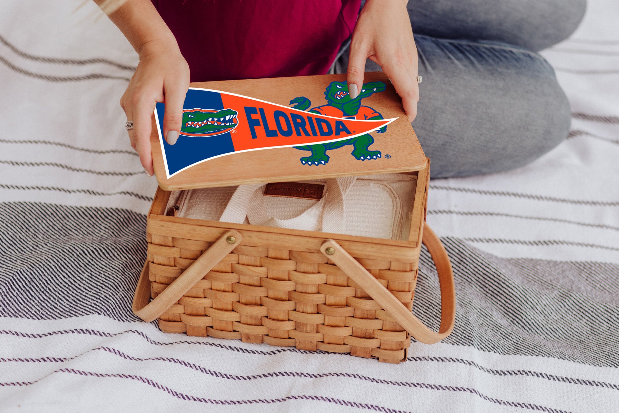 The Florida Gators Poppy Personal Picnic Basket is a handwoven wicker basket ideal for bringing a little country charm to your office lunch or for toting wine and snacks to an outdoor concert.