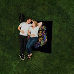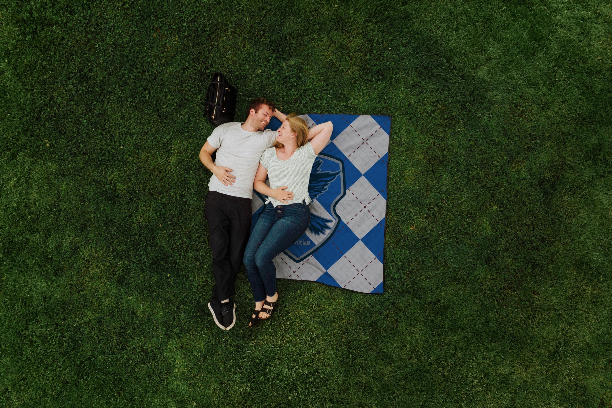 A water-resistant, machine-washable polar fleece picnic blanket with matching drawstring backpack, both printed with your choice of sports team logo, character design, or custom print?! VERY Impresa-ive.