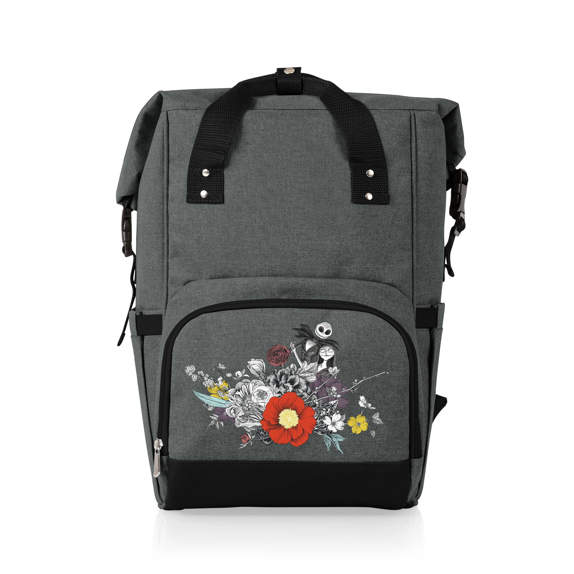 Ditch the bulky cooler on wheels and carry your bone-chillingly cold party favors in total comfort and striking style with the Nightmare Before Christmas Jack and Sally OTG Roll-Top Cooler Backpack.