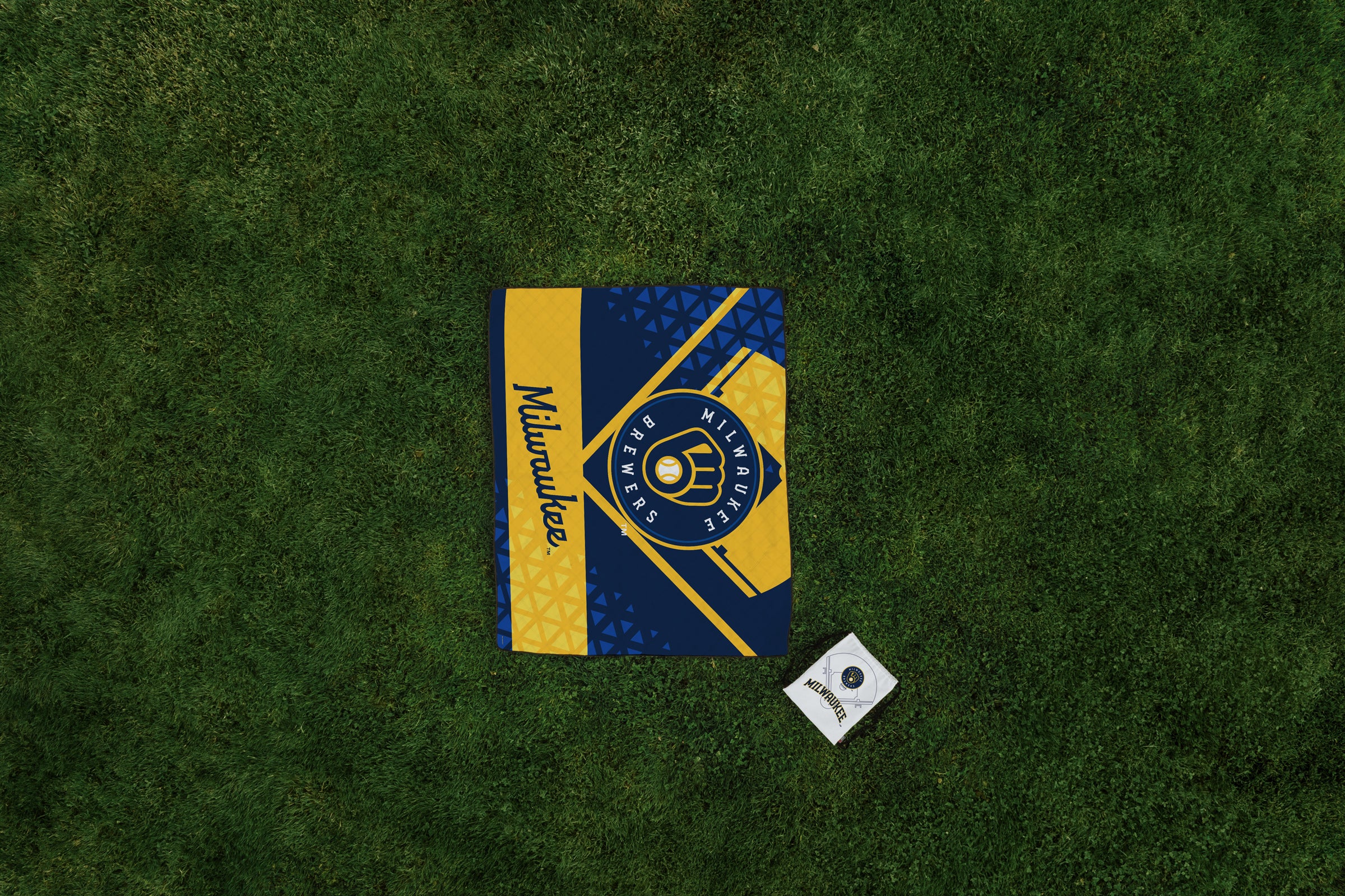 A water-resistant, machine-washable polar fleece picnic blanket with matching drawstring backpack, both printed with your choice of sports team logo, character design, or custom print?! VERY Impresa-ive.