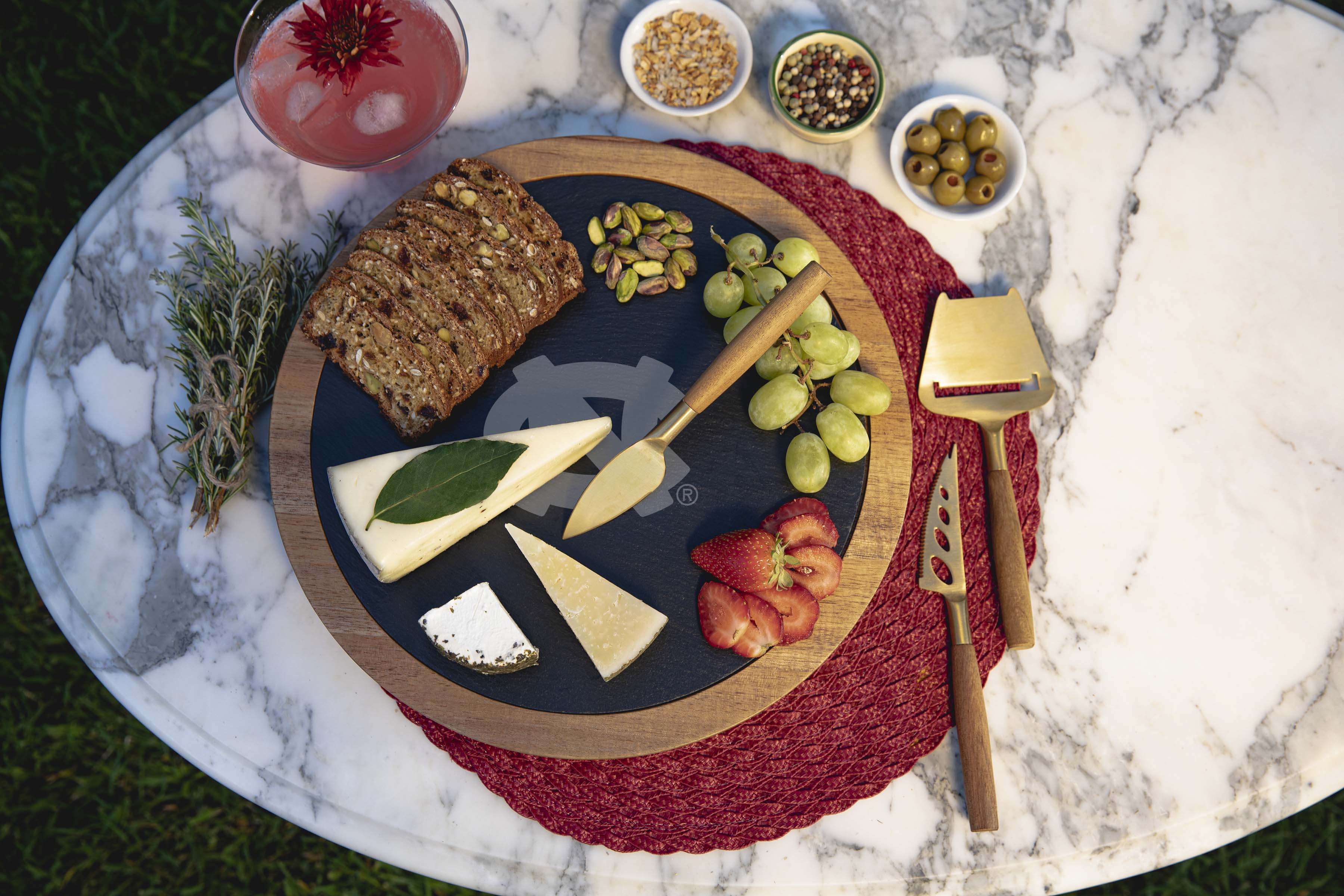The North Carolina Tar Heels Insignia Acacia and Slate Serving Board with Cheese Tools is a modern complement to any stylish dinner party.