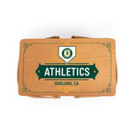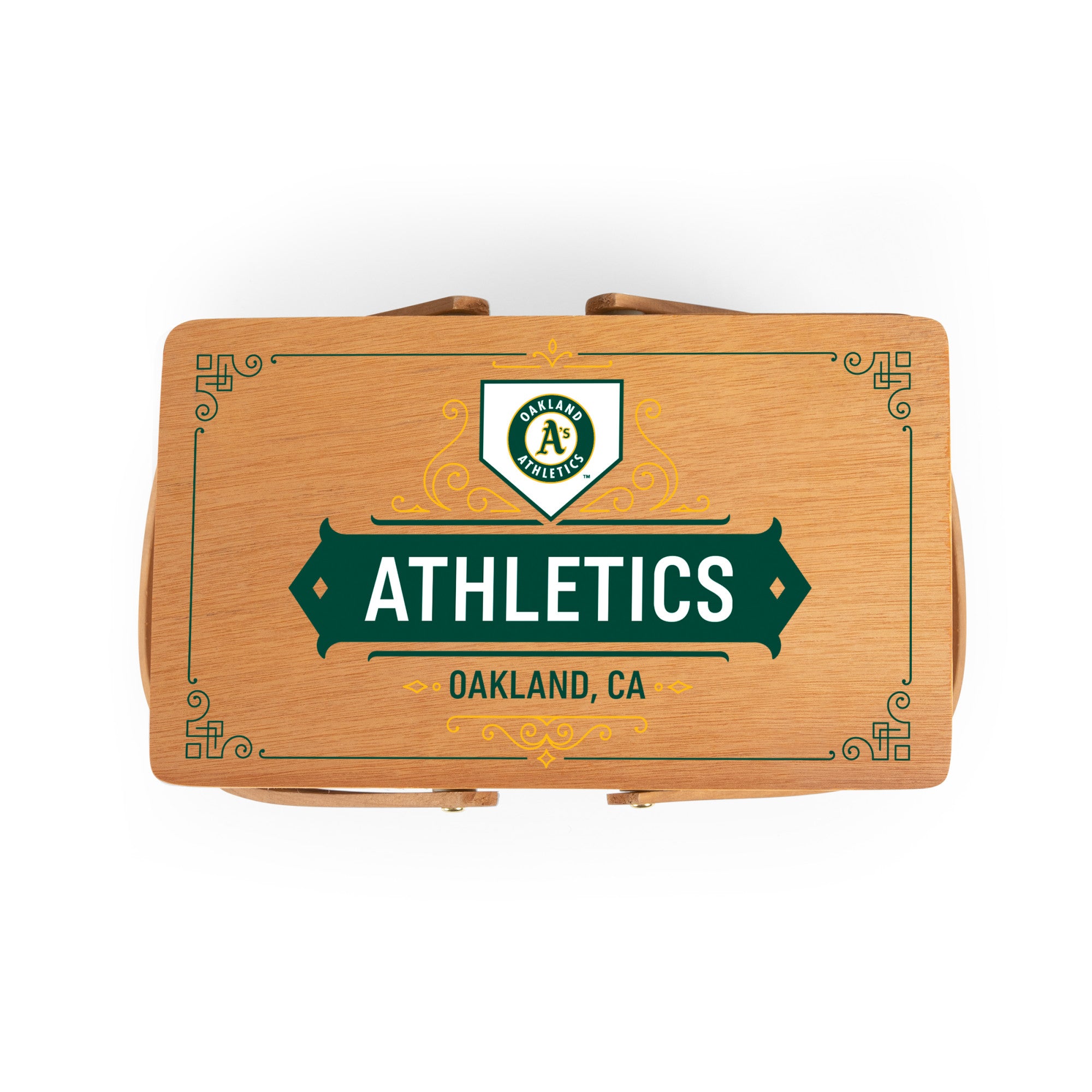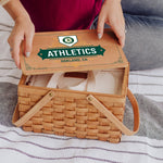 The Oakland Athletics Poppy Personal Picnic Basket is a handwoven wicker basket ideal for bringing a little country charm to your office lunch or for toting wine and snacks to an outdoor concert.