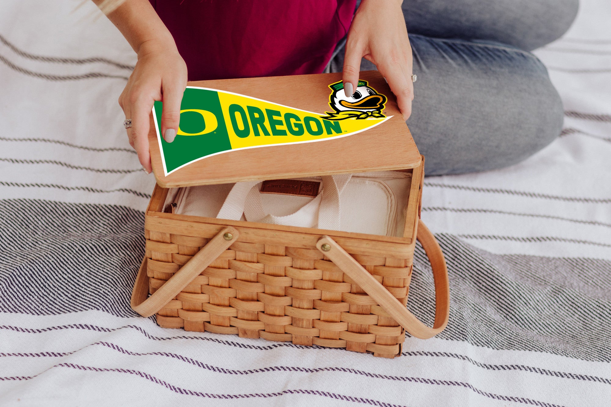 The Oregon Ducks Poppy Personal Picnic Basket is a handwoven wicker basket ideal for bringing a little country charm to your office lunch or for toting wine and snacks to an outdoor concert.