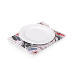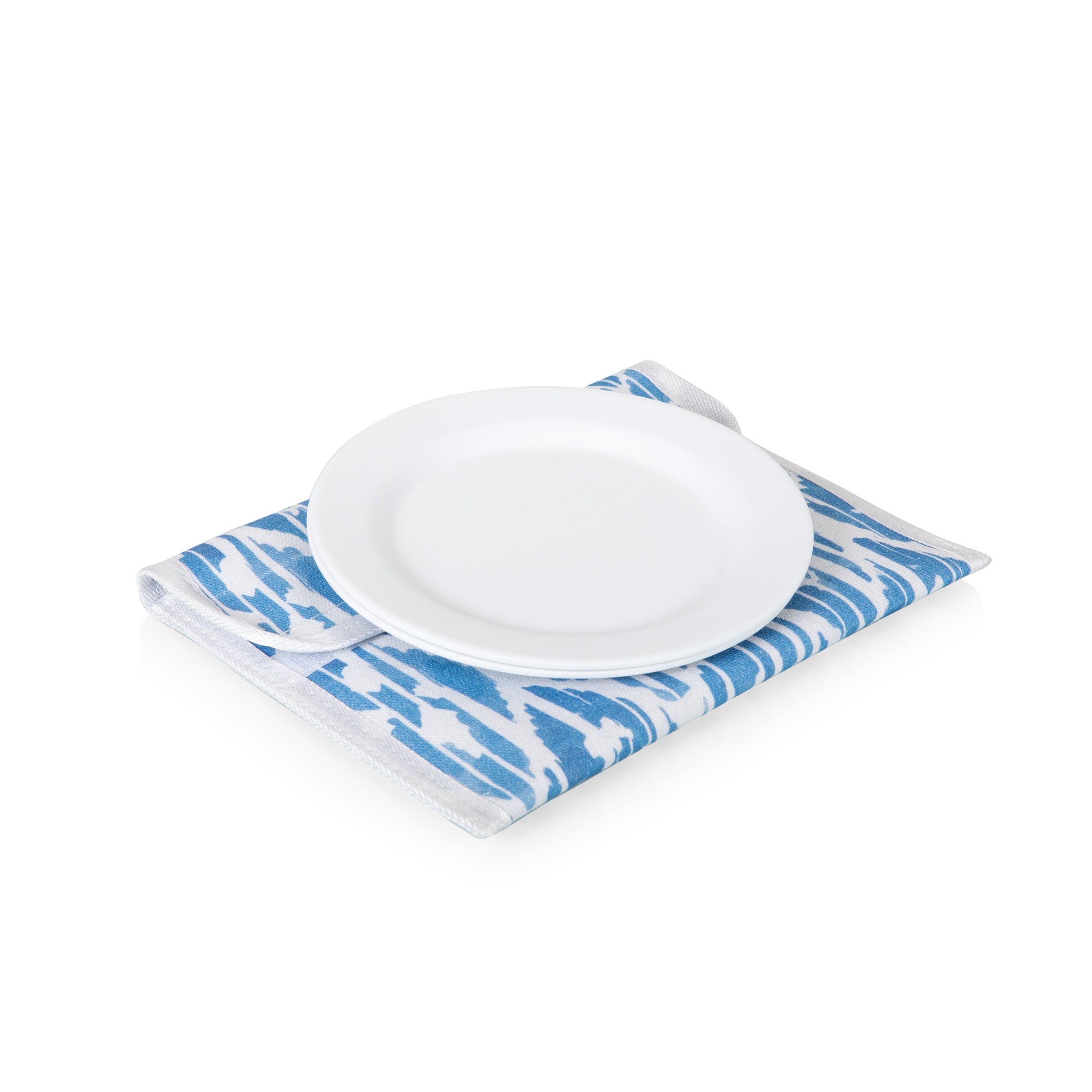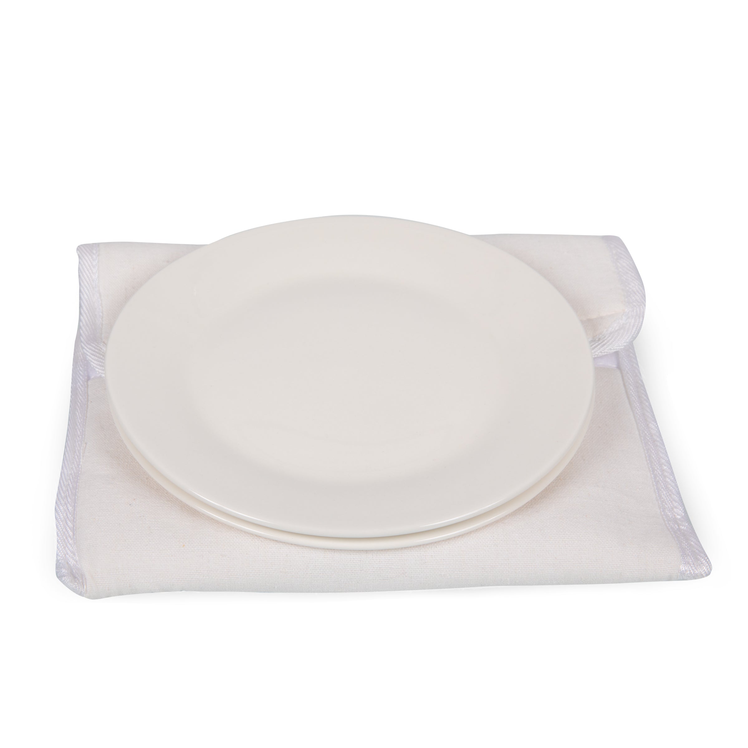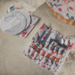 - Individual canvas pouches for storing plates and flatware sets