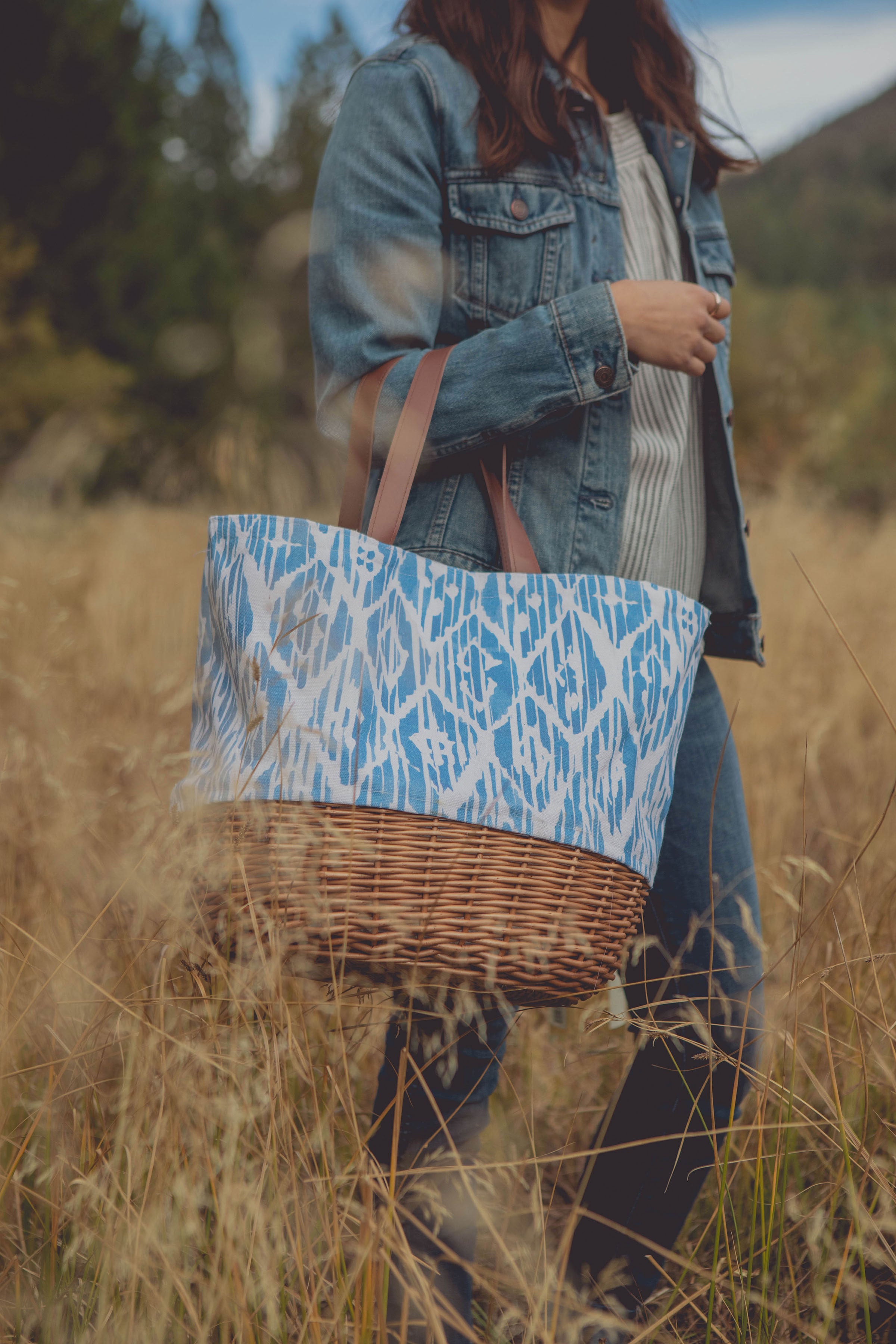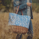 - Canvas body with Handwoven wicker bottom