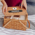The San Diego Padres Poppy Personal Picnic Basket is a handwoven wicker basket ideal for bringing a little country charm to your office lunch or for toting wine and snacks to an outdoor concert.