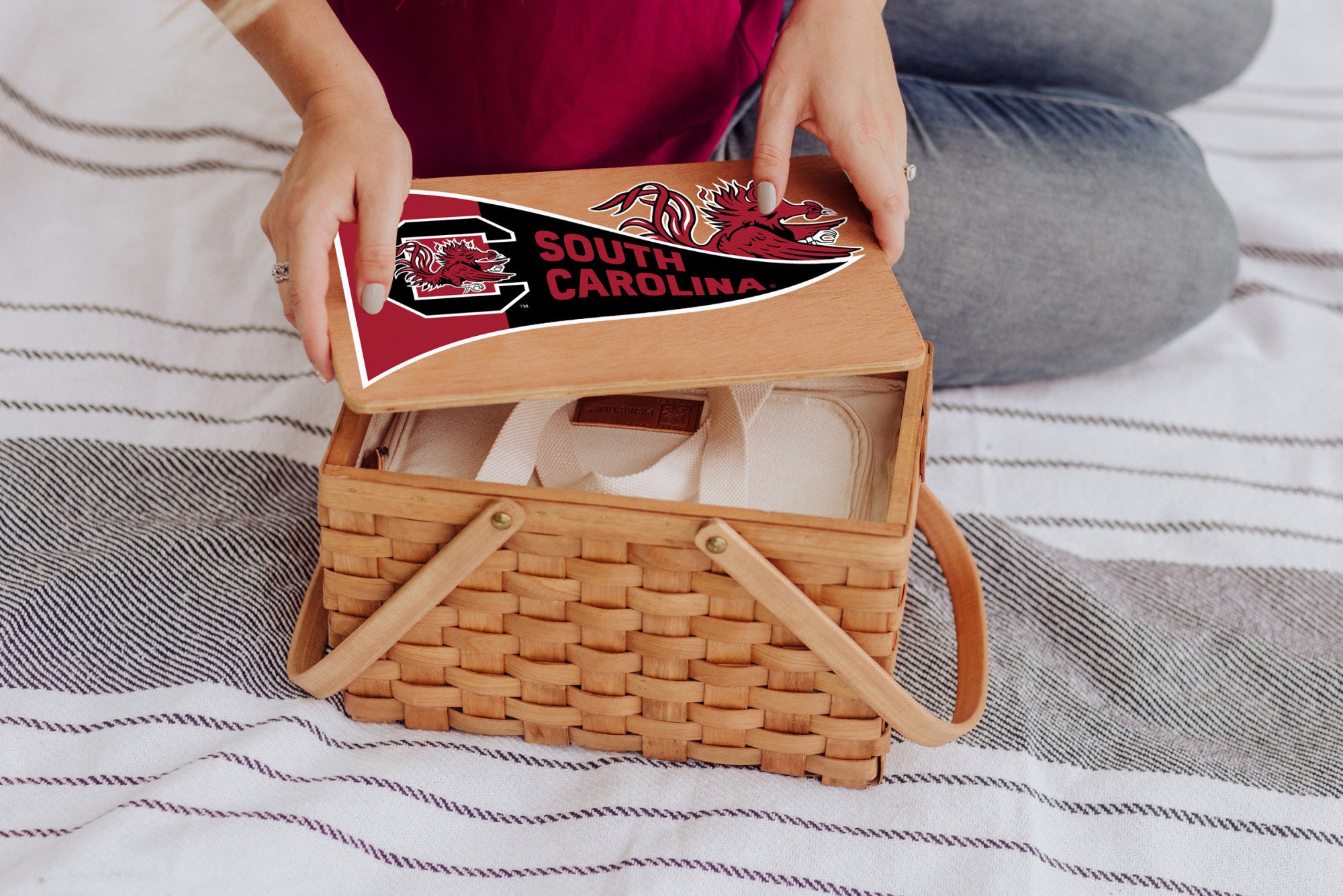 The South Carolina Gamecocks Poppy Personal Picnic Basket is a handwoven wicker basket ideal for bringing a little country charm to your office lunch or for toting wine and snacks to an outdoor concert.