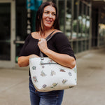 Loving Minnie Mouse - Uptown Cooler Tote Bag. Its a cute insulated cooler tote with iconic Minnie Mouse polka dots. Its a small sized tote thats easy to carry and is lightweight. Its great for those visits to the farmers market or you can carry your lunch in it. Its very durable and easy to clean. (Wipe with damp cloth only) It has one large, zippered compartment and one small, zippered compartment. Zippers and handles are very durable and is made from vegan pebbled leather. Minnie Mouse - Uptown Cooler Tote Bag is a stylish tote that makes a great gift for loved ones, friends or to yourself. Highly recommended