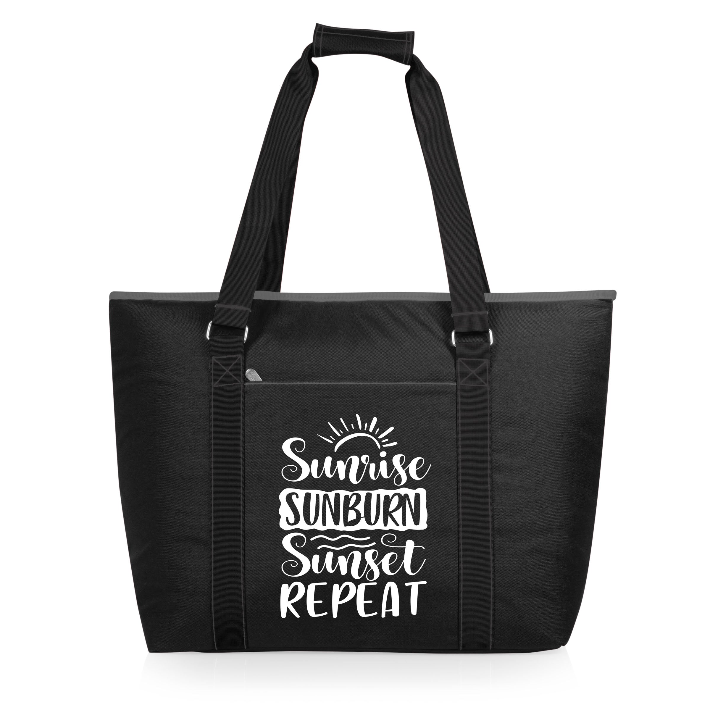 Legend has it that the “Sunrise Sunburn Sunset Repeat“ Tahoe XL Cooler Tote Bag earned its reputation on a busy beach amid multiple distractions.
