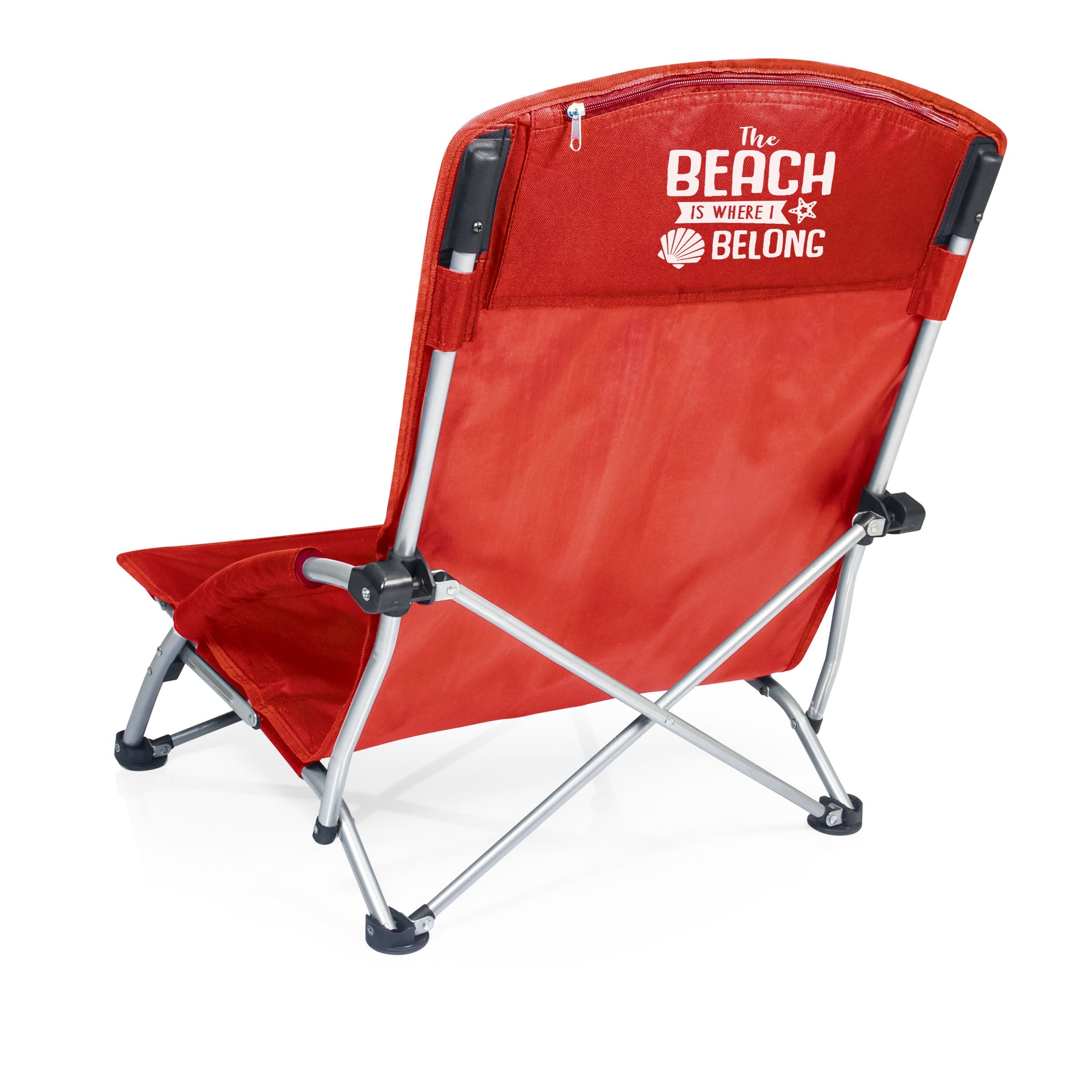 Plush, portable, and packable - the "The Beach is Where I Belong" Tranquility Portable Beach Chair is an outdoor chair. It makes this the ideal travel chair for camping, picnics, and beach days!