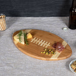Show your love for football with Picnic Time's Touchdown! Cutting Board, a bamboo-constructed pigskin-inspired cheese board that doubles as a serving platter!