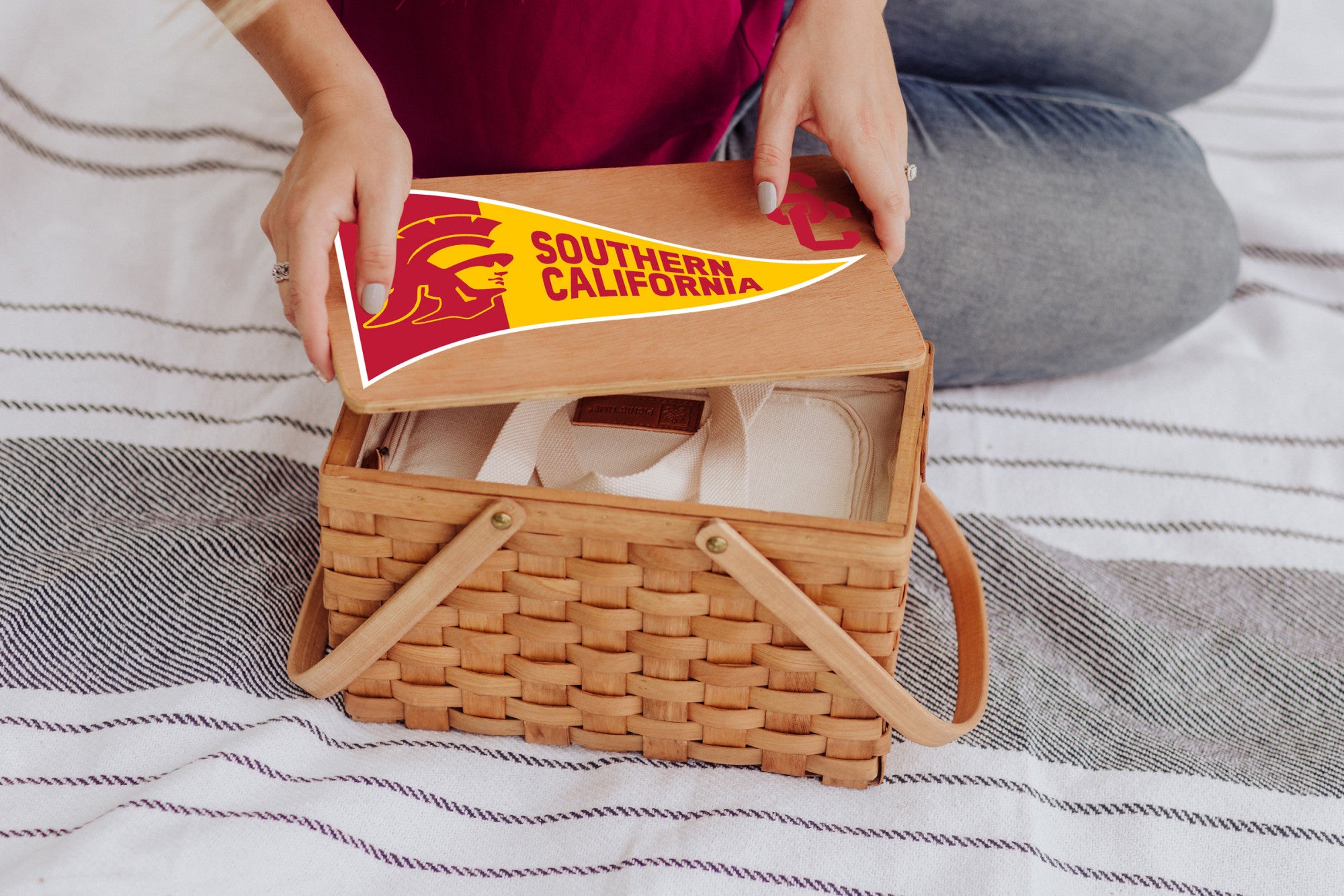 The USC Trojans Poppy Personal Picnic Basket is a handwoven wicker basket ideal for bringing a little country charm to your office lunch or for toting wine and snacks to an outdoor concert.