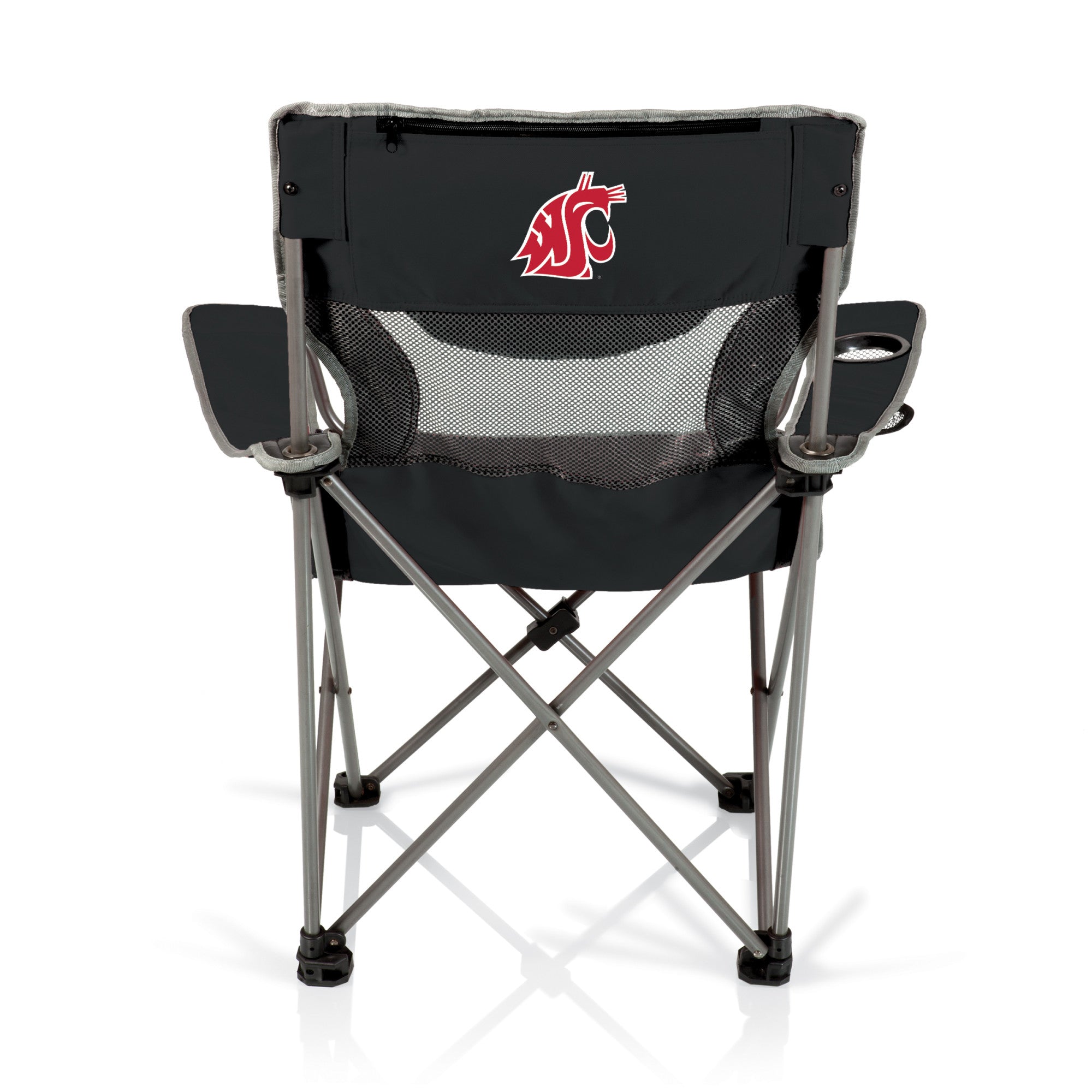 The Campsite Camping Chair is a highly-portable outdoor folding beach chair that folds into a drawstring carrying bag with a shoulder strap and is decorated with your favorite Collegiate team's logo